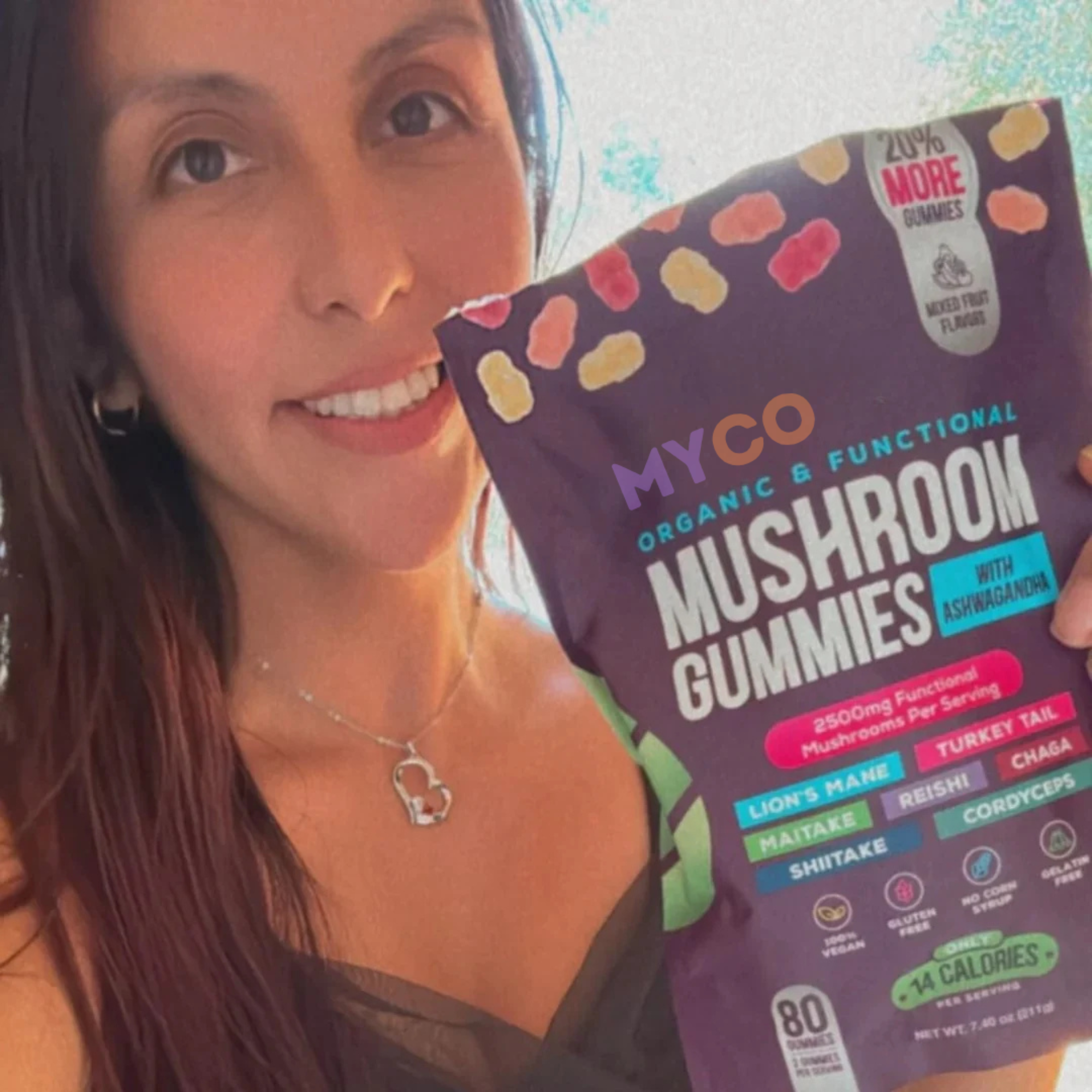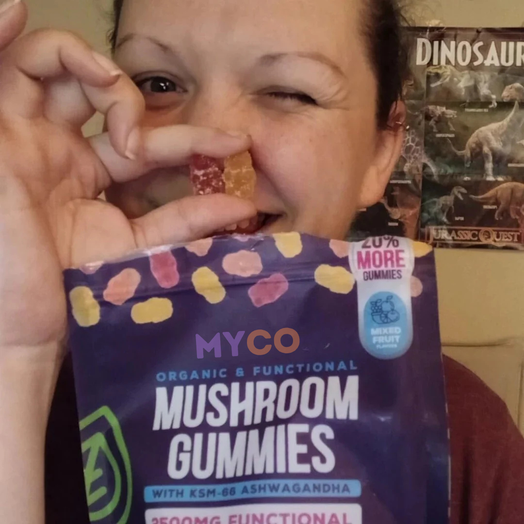 Cada gominolaMycocontiene una mezcla deChaga,Maitake,TurkeyTail (Cola de pavo), Shiitake,Reishi,Cordyceps,Lion’sMane (Melena de león) yAshwagandhaKSM-66, una combinación potente de beneficios